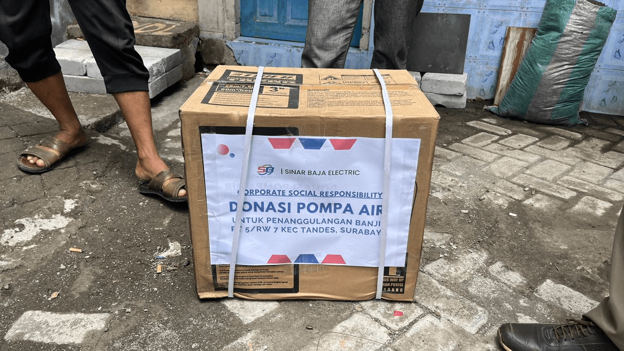 SBE carried out a Corporate Social Responsibility (CSR) initiative by donating an irrigation pump to support flood mitigation efforts in RT 5, Tandes District.